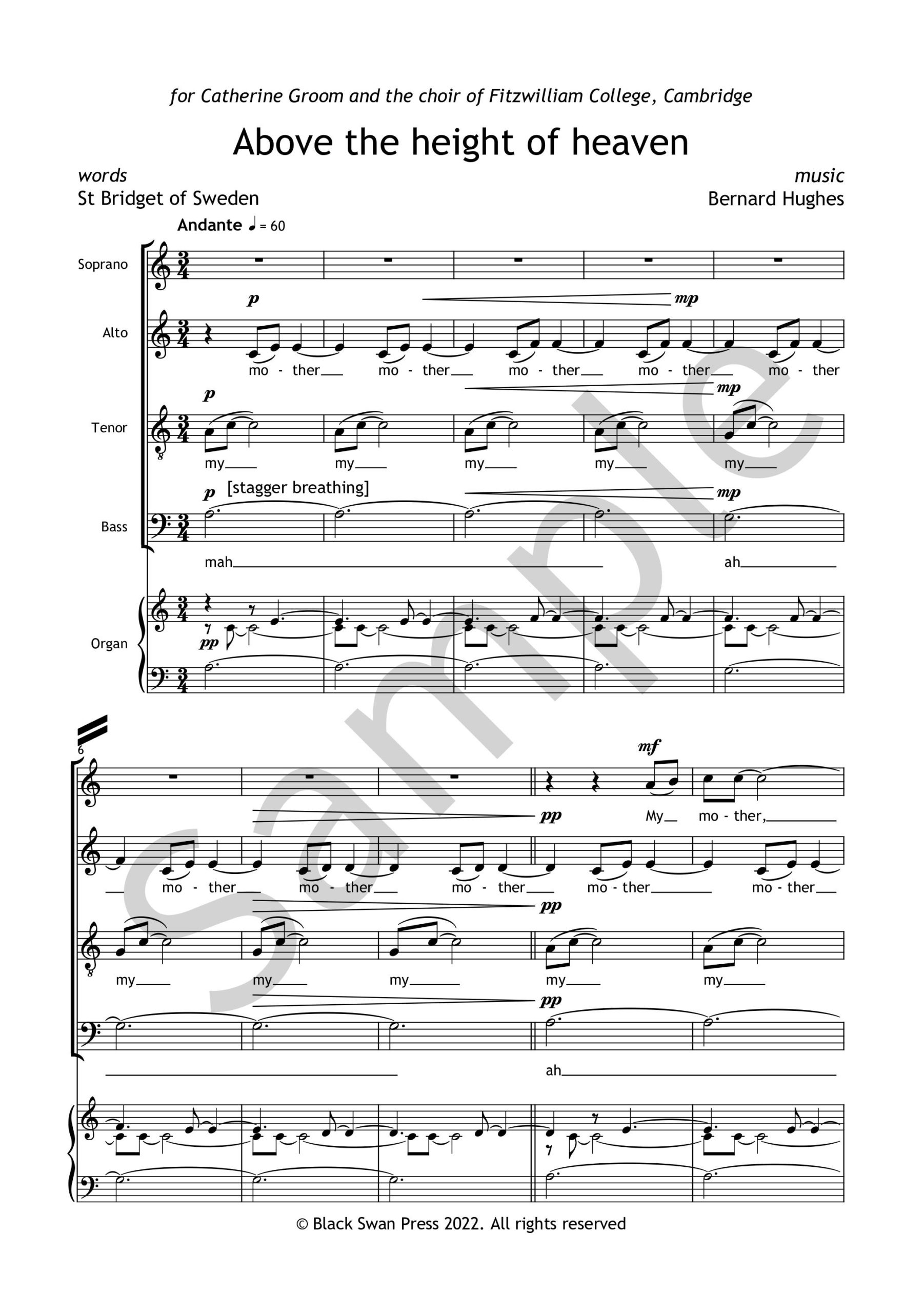 A beautiful and technically straightforward anthem for SATB choir and optional manual organ setting a mystical medieval text from the Liber Celestis of St Bridget of Sweden. Written for the choir of Fitzwilliam College, Cambridge in 2022, it is suitable for liturgical or concert use.